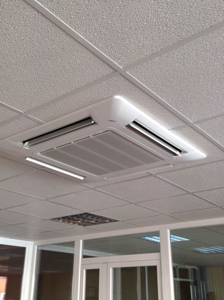 Instalación de unidad Split cassette, bomba de calor sistema inverter para sala de formación en Mercamadrid.